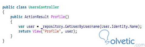 Veamos en la siguiente imagen un código de un controlador de usuarios que nos permite acceder al perfil del mismo: