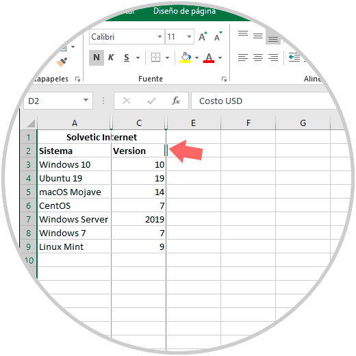 4. Cómo mostrar columnas en Microsoft Excel 2019