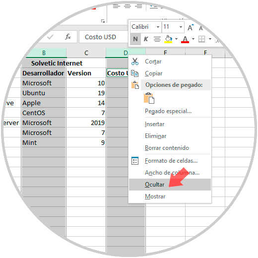 3. Cómo ocultar columnas en Microsoft Excel 2019