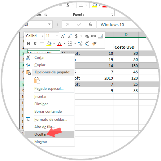 1. Cómo ocultar filas en Microsoft Excel 2019