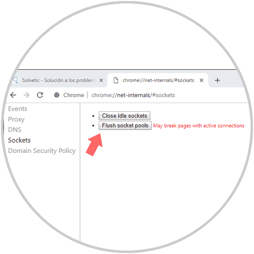Allí pulsamos en el botón Flush socket pools y a continuación procedemos a reiniciar el navegador para comprobar la conexión a los sitios web deseados.