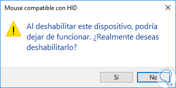 - Dar clic derecho sobre la línea “Mouse compatible con HID” y seleccionar “Deshabilitar dispositivo”.