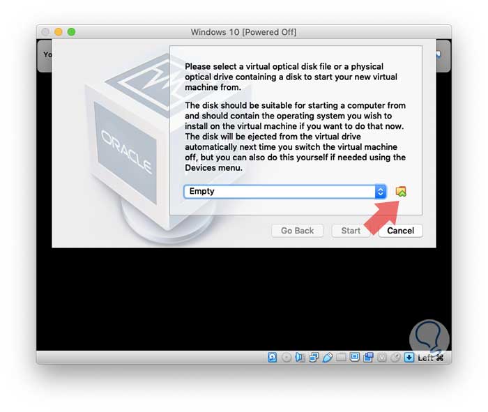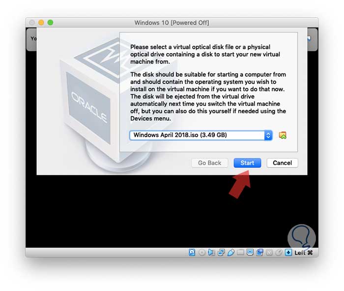 Para dar inicio al proceso de creación de la maquina virtual en VirtualBox en Mojave, pulsamos en el botón "Iniciar" y se desplegara lo siguiente: