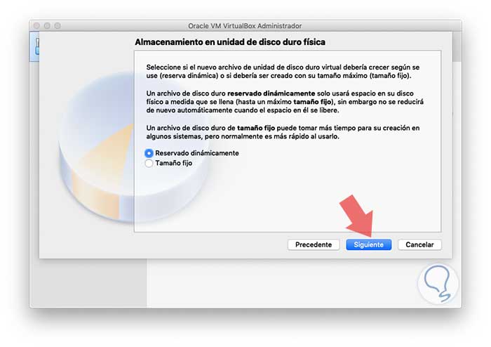 En la siguiente ventana definimos el tipo de almacenamiento a usar: