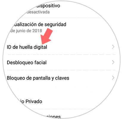 Aquí vas a ver varias opciones. Entra en ID de huella digital.