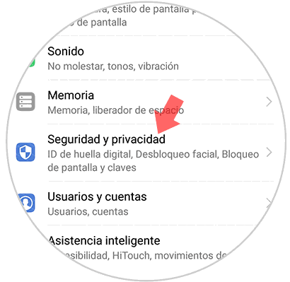 Ahora tenemos que buscar la opción de “Seguridad y privacidad” en la que podrás gestionar este aspecto. Pulsa aquí.