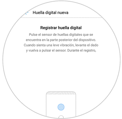 Lo siguiente que debes hacer es pulsar el sensor de huellas digitales que se encuentra en la parte posterior del dispositivo. Cada vez que sientas una leve vibración deberás levantar el dedo y pulsar de nuevo el sensor.