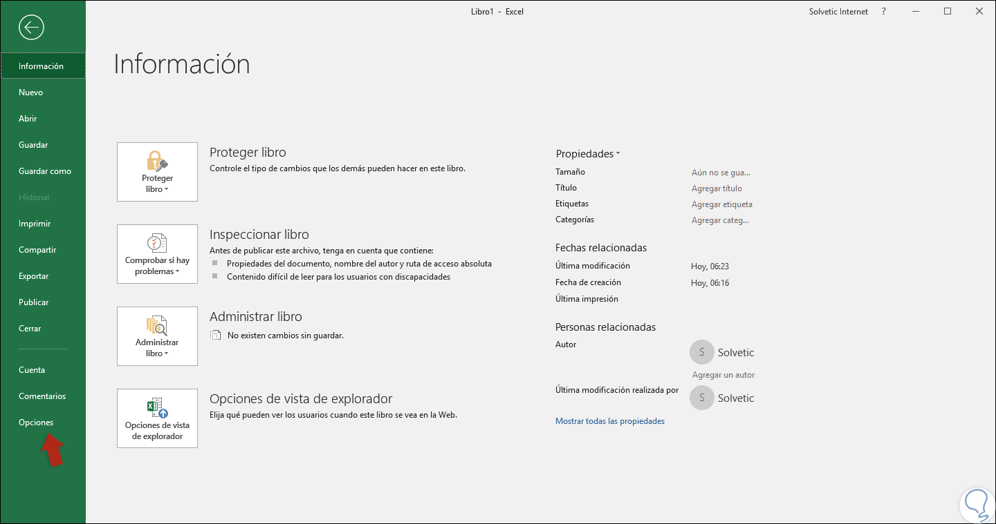 El primer método es bastante simple e implica ir directamente a las opciones de la hoja de cálculo Excel 2019, para ello vamos al menú “Archivo” y allí iremos a la sección “Opciones”: