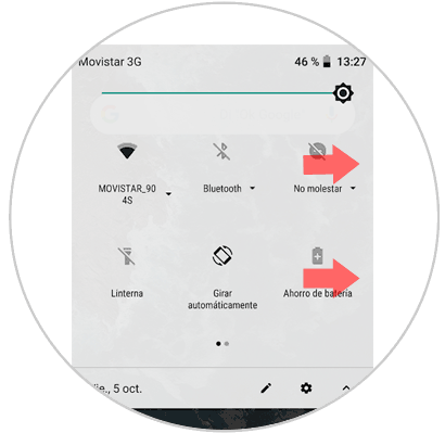Con la ayuda de tus dedos desliza la pantalla de tu teléfono Xiaomi hacia la parte de abajo desde la pantalla principal. Aparecerán opciones referentes a los ajustes del móvil.