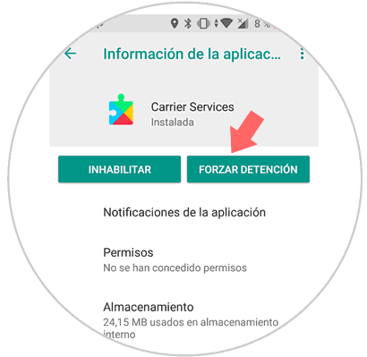 3. Forzar detención de la aplicación que se cierran inesperadamente para solucionar error Xiaomi Mi A2 Lite