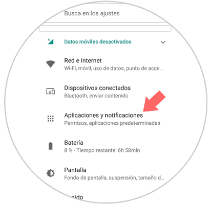 Selecciona la opción que se llama “Aplicaciones y notificaciones”