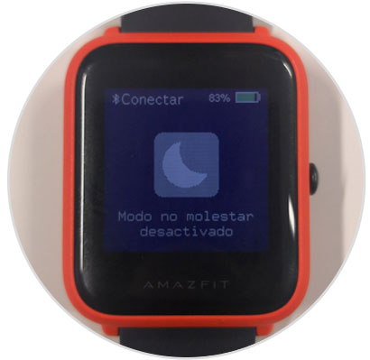 Cuando aparezca este mensaje en la pantalla significará que el modo “No molestar” ya está activo en tu Amazfit Bip de Xiaomi.