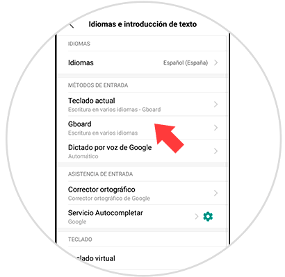 Dentro de esta Ventana elegiremos la opción de “Gboard” para poder gestionarlo.