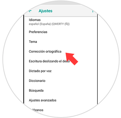 Pulsa sobre la opción de “Corrección ortográfica”.