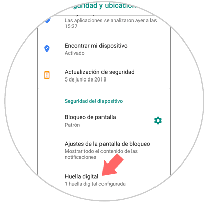 Una vez aquí nos vamos a la sección “Seguridad del dispositivo”. En ella encontraremos la opción “Huella dactilar”, pulsaremos sobre ella.