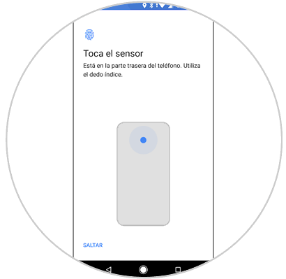 Ubicaremos el dedo índice de la mano en el escáner de huella dactilar que se encuentra en la parte posterior del dispositivo móvil.