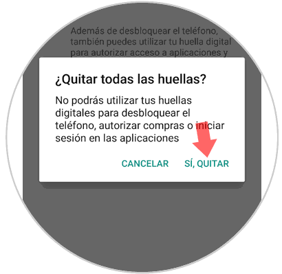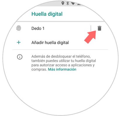 Ya estemos aquí veremos la huella dactilar que habíamos configurado anteriormente, en la parte superior derecha hallaremos una papelera en la cual pulsaremos.