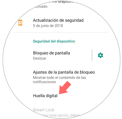 Una vez entremos aquí nos iremos a la sección “Seguridad del dispositivo”, en esta misma sección hallaras la opción “Huella dactilar”, oprimimos sobre ella.