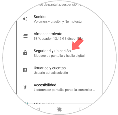 Buscamos la opción que se titula “Seguridad y ubicación”, una vez la encontremos la pulsaremos.