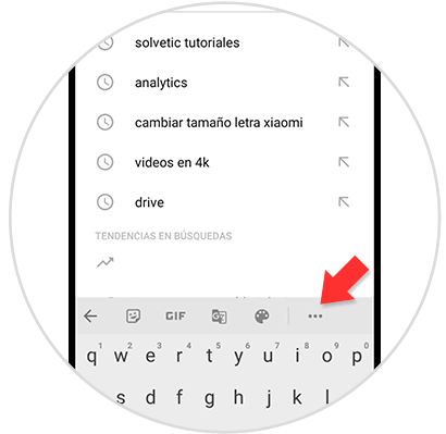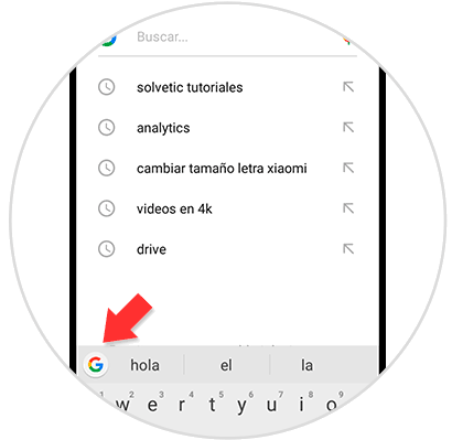 Ahora desplegamos el teclado pulsando sobre la barra de navegador de Google que aparece.