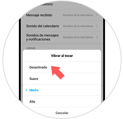 Ahora selecciona la opción de “Desactivado” para quitar la vibración al pulsar la pantalla.