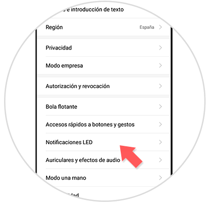 El siguiente paso será acceder a la opción de “Notificaciones LED” para poder configurarlo.