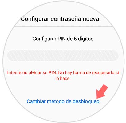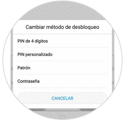Una vez aquí, tienes que introducir la contraseña actual en el caso de que la tengas y a continuación seleccionar "Cambiar método de desbloqueo" para poder acceder a las diferentes opciones.