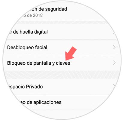 Vas a ver que aparece una nueva ventana con diferentes opciones. En este caso debes entrar en "Bloqueo de pantalla y claves"