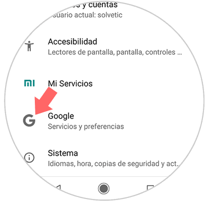 El siguiente paso que vamos a realizar es seleccionar la opción que tiene por nombre “Google” que se encuentra dentro de la ventana de las opciones de ajustes, prácticamente en la mitad de las opciones.