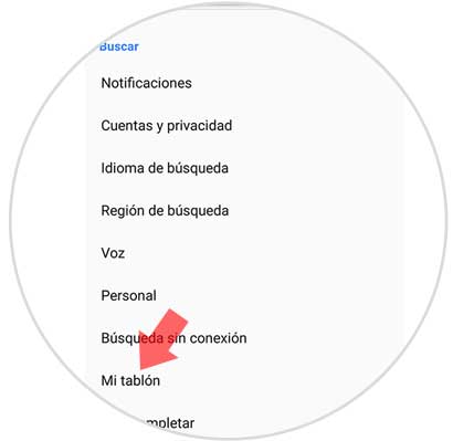 Ahora que te encuentras dentro de la ventana de los ajustes de Google, debes elegir dentro de las opciones la que se llama "Búsqueda".