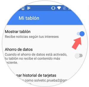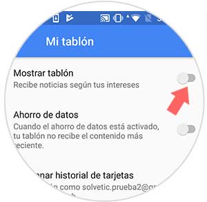 Ahora que seleccionaste la opción anterior verás que aparece en la nueva ventana la parte de arriba una opción con el nombre de "Mostrar tablón", que se encuentra en la parte baja de las opciones. Si deslizas el pequeño botón hacia la izquierda estarás desactivando la opción. En caso de hacerlo hacia el otro lado, el lado derecho, estaremos habilitando nuevamente la opción, lo notarás por que el pequeño círculo se coloca de color azul.