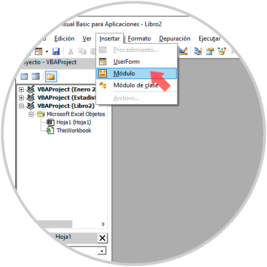 Una vez accedamos a la ventana del Editor de Visual Basic, vamos al menú “Insertar” y allí seleccionamos la opción “Módulo”: