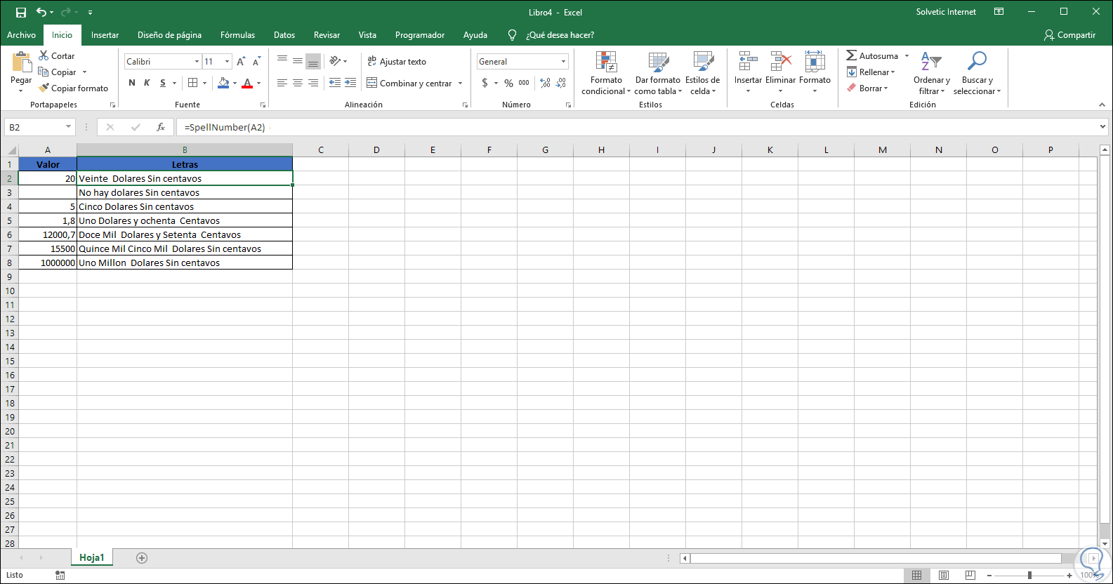Una vez realizado esto, podemos usar dos métodos para convertir los números en letras en Excel 2019 o 2016, estos son:
