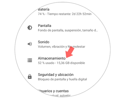 Una vez adentro de la aplicación “Ajustes” veremos muchas secciones, buscaremos la opción “Almacenamiento” y oprimimos sobre esta misma.
