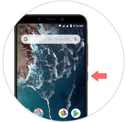 Primero debemos mantener presionado el botón de encendido y apagado que se encuentra en la parte lateral de nuestro teléfono Xiaomi Mi A2 Lite.