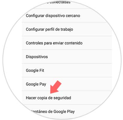 Una vez estemos adentro de “Google” tendremos que bajar hasta que encontremos la opción llamada “Hacer copia de seguridad”. Pulsamos sobre ésta para continuar.