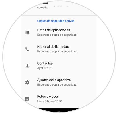 Si seleccionamos una de las opciones podemos activarla para que siempre se mantenga haciendo la copia de seguridad y quede activa, podemos hacer también el mismo procedimiento con las otras opciones.