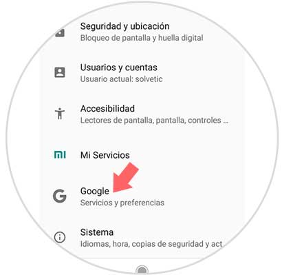 Ya adentrados en esta aplicación nos aparecerán muchas opciones, en este buscaremos la sección titulada “Google”, y una vez la encontremos pulsamos sobre esta misma.