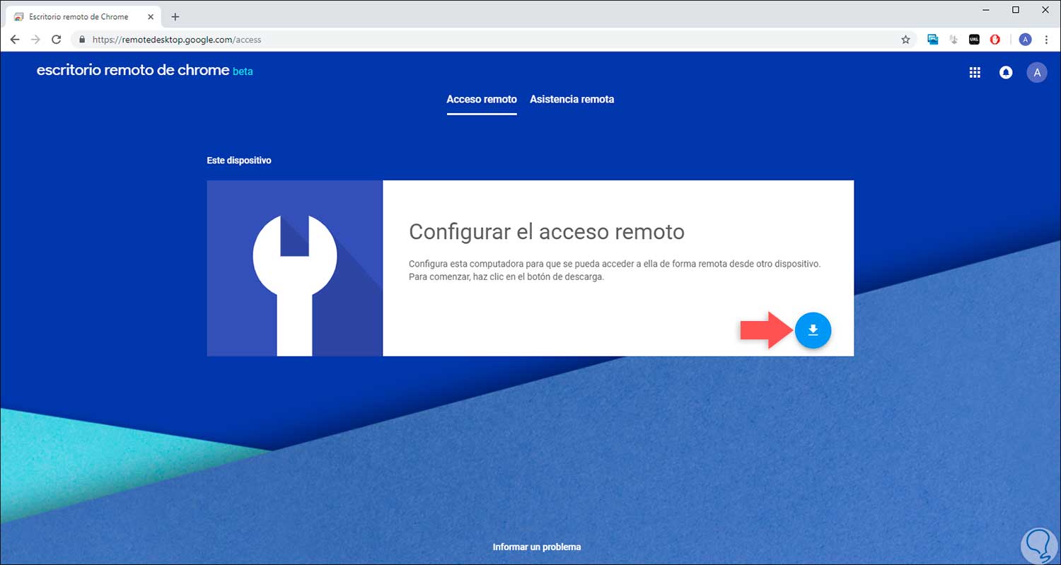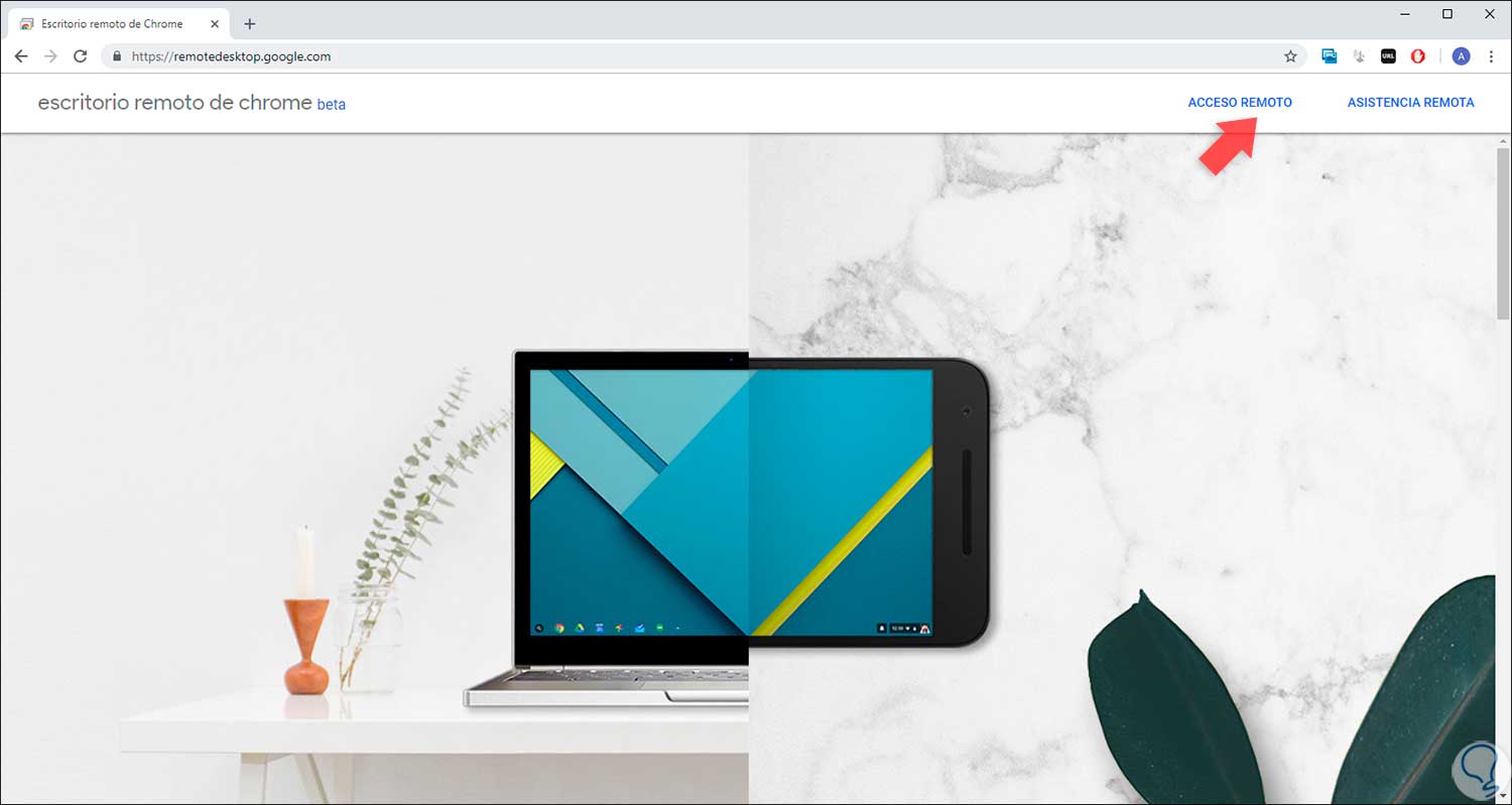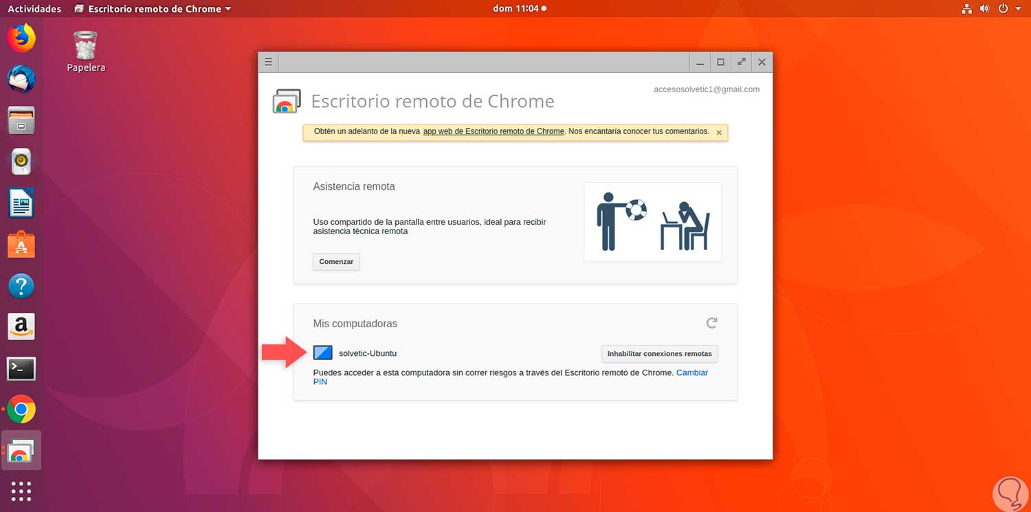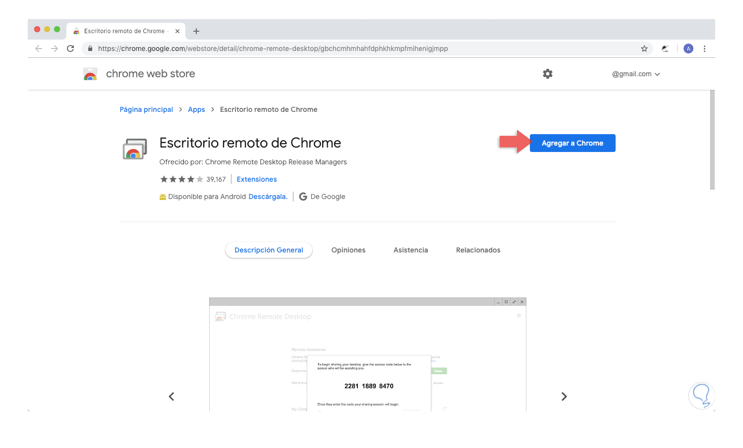 Allí se dará inicio al proceso de conexión con el escritorio remoto de Chrome: