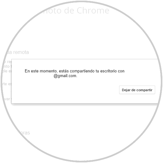 Una vez establezcamos la conectividad, veremos la dirección de correo electrónico y tendremos el control sobre el equipo remoto. Para finalizar la sesión compartida, damos clic en "Dejar de compartir".