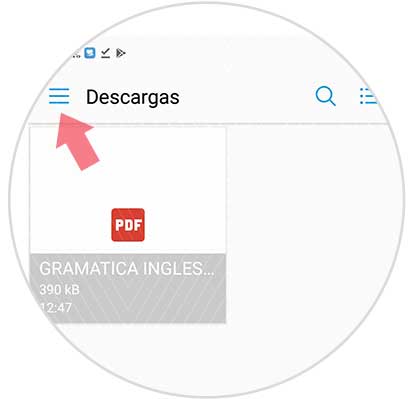 A continuación, verás que puedes encontrar disponibles todas aquellas descargas que has realizado en tu teléfono. Si ves que la descargas que buscas no aparece entre las disponibles, selecciona en la parte superior el menú de las tres rayitas.