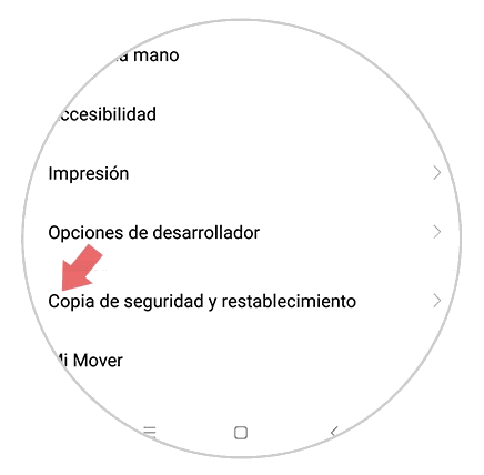 Una vez entremos se nos abrirá una pantalla en la cual buscaremos y seleccionaremos la opción “Copia de seguridad y restablecimiento”.