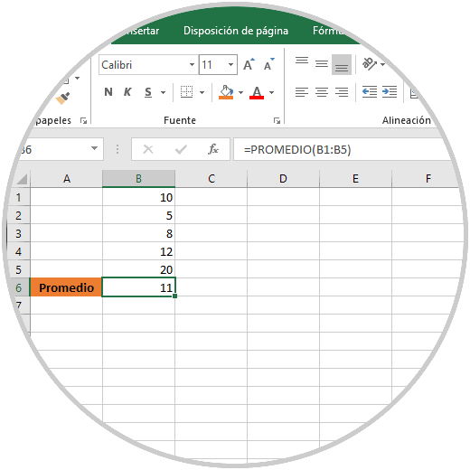 2. Cómo usar de la función Promedio en Excel 2019 y Excel 2016