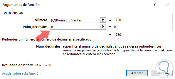 - En el campo Num_decimales ingresamos el valor cero (0)