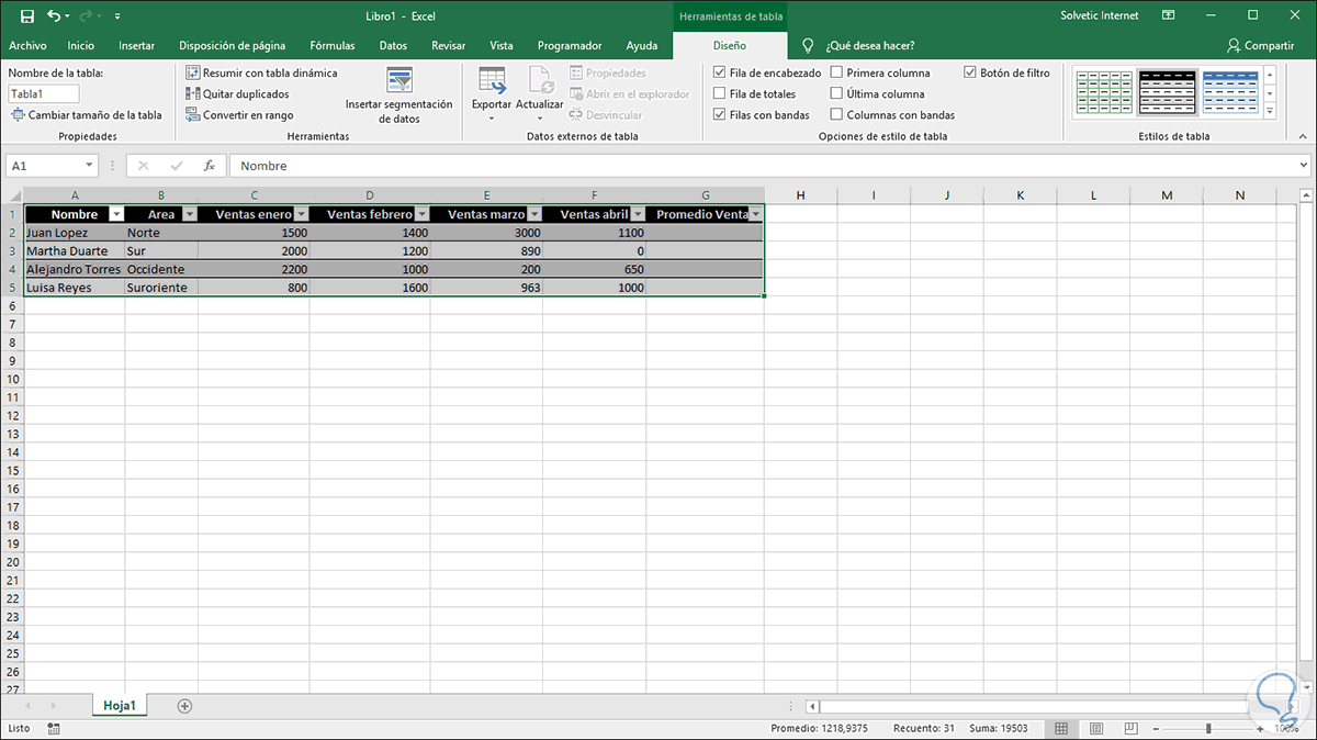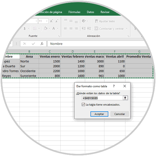Al realizar esto automáticamente Excel detectará los valores numéricos en la tabla: