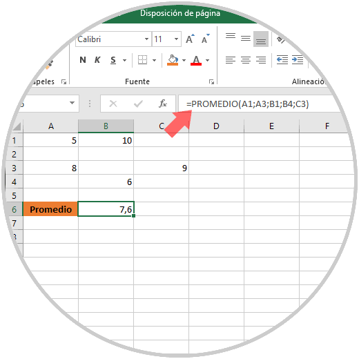Esta fórmula halla el promedio de todos los números en el rango indicado, en caso de tener valores en diversas formulas vamos a ejecutar la siguiente formula: