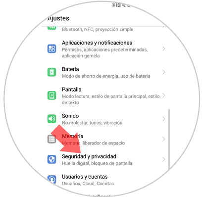 Ahora tienes que desplazarte hacia abajo para seleccionar “Seguridad y privacidad”