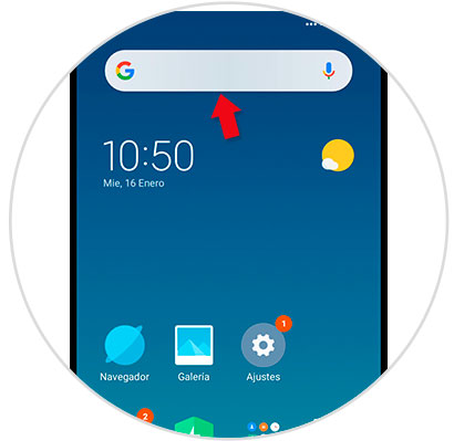 Para poder realizar correctamente este procedimiento, primero deberás ingresar al buscador de Google; ubicada por defecto en la pantalla principal del Xiaomi Redmi 6A