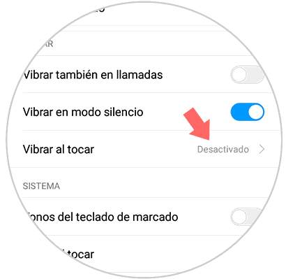 En tercer lugar, tienes que ingresar en la opción de “Vibrar al tocar”, para intentar desactivarla.