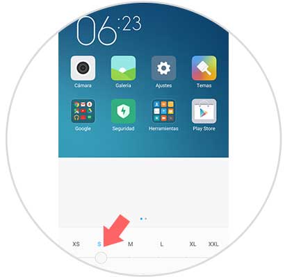 En la parte inferior de la pantalla, tendremos la posibilidad de ir probando con diferentes tamaños de letra para ver cuál escoger. Tendremos una pre-visualización en la parte superior de la pantalla.
